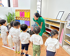 グローリッジキッズスクールに通い、モンテッソーリレッスンを受けます。(2歳~)モンテッソーリ教育は、子どもたちが自主的に活動を選び、主体的に学ぶことを重視しています。教室内には興味を引く多様な教具が揃っており、子どもたちは自分のペースで学びを深めます。教師は観察とサポートを行い、子どもたちが自分で問題解決をする力を育てます。異年齢の子どもたちが共に学ぶことで、協力や責任感を自然に身につけることができます。